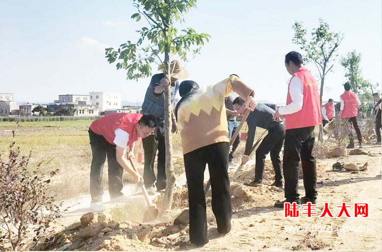 在2024年1月,驻站代表们主动作为,带头捐款植树,带动上陈村干部群众共同植树,改善了东河一渠道坝体周围的生态环境,清理了脏乱差的渠道渠体4公里,共种下金香樟树苗18棵,红花灌木36棵,还家乡一片美丽风光。2024年4月,城东街道各级人大代表和党员干部齐聚上陈村兼头顶高速路旁,手持铁锹,脚踏新土,共同种下了500棵4公分的芒果树,打造了城东街道“人大代表林”,为陆丰市的生态文明建设再添新绿。