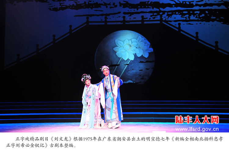 根据明宣德七年正字戏古剧本《刘希必金钗记》整编、打造的正字戏精品剧《刘文龙》于2014年荣获广东省第九届精神文明建设“五个一工程”优秀作品奖,同年11月获第十二届广东省艺术节优秀剧目二等奖, 2014年6月24日《刘文龙》全剧在中央电视台戏曲频道“九州大戏台”播出,2015年10月入选中央电视台《多剧种百台精品大戏荟萃展播》。