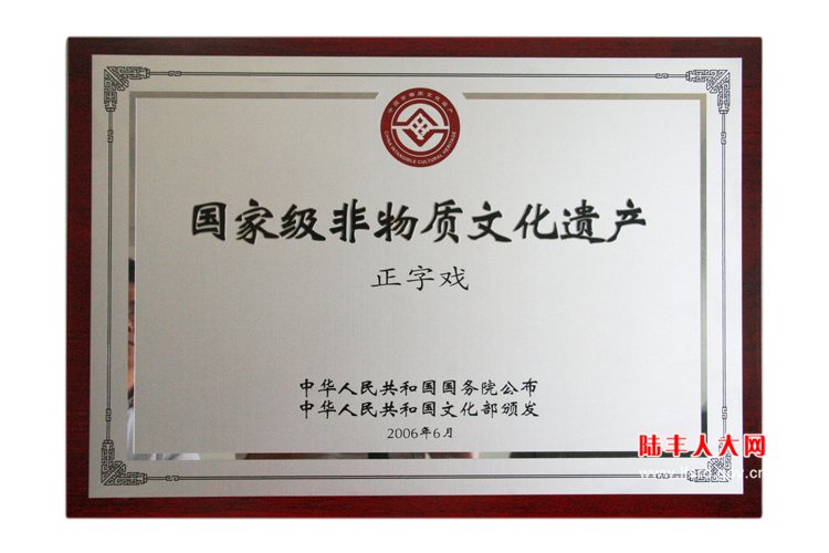 正字戏于2006年6月被中华人民共和国国务院公布列入首批国家级非物质文化遗产名录;2007年11月被广东省人民政府公布列入省级非物质文化遗产名录。历史上曾涌现过著名正字戏表演艺术家陈宝寿及著名艺人黄学明、刘彩等。现有国家级传承人2名,省级传承人3名、汕尾市级传承人8名。
