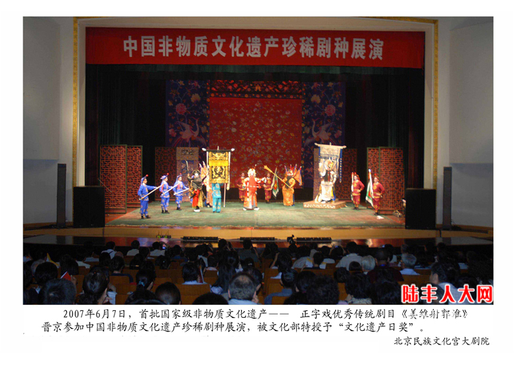 2010年7月陆丰市正字戏剧团应邀参加香港首届中国戏曲节展演,同年10月参加由中国艺术研究院主办的bmw中国文化之旅展演,均受到行家和观众的赞扬。2010年10月由广东省委宣传部、省文化厅、中山大学联合主办的广东省特色剧种展演暨学术研讨会上,正字戏《刺梁骥》《古城会》参加展演均获优秀剧目奖。