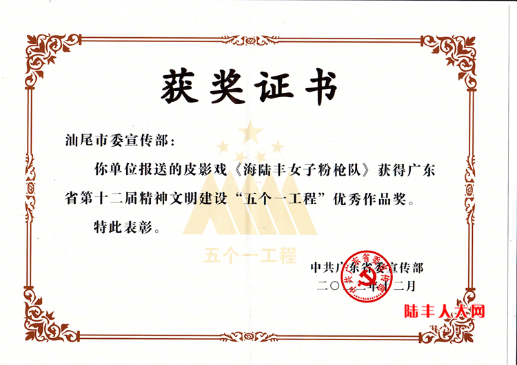 2012年12月,陆丰皮影戏《猪八戒背媳妇》参加“金狮奖”第四届全国木偶皮影戏中青年技艺大赛,荣获“最佳表演奖”;