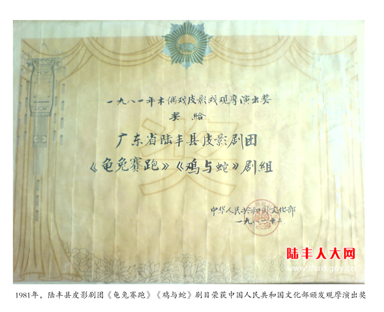 2010年,陆丰市皮影剧团参加广东省特色剧种展演暨学术研讨会荣获优秀剧目奖;