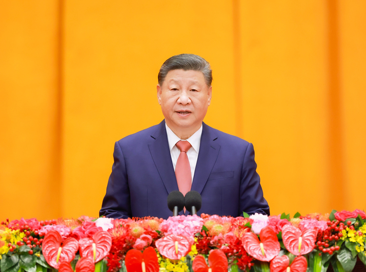 1月27日,中共中央、国务院在北京人民大会堂举行2025年春节团拜会。中共中央总书记、国家主席、中央军委主席习近平发表讲话。新华社发(冯永斌 摄)
