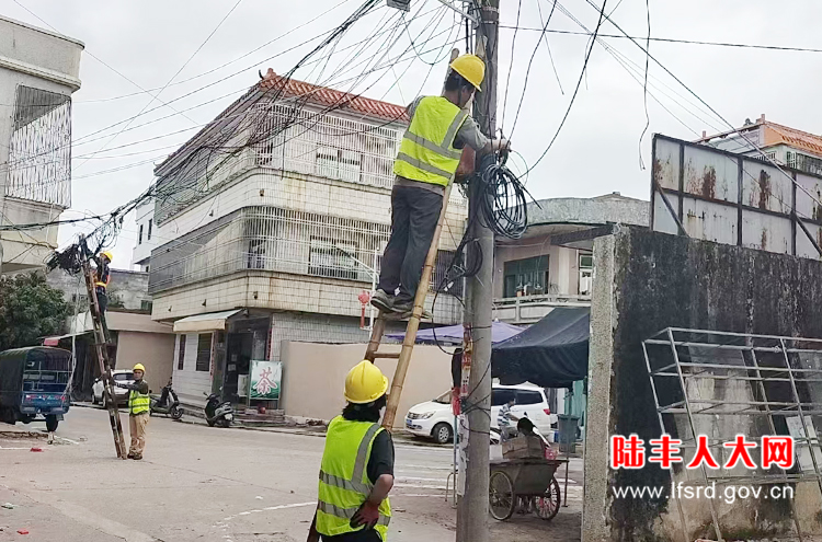 甲东镇人大代表检查“三线”乱搭乱拉情况。