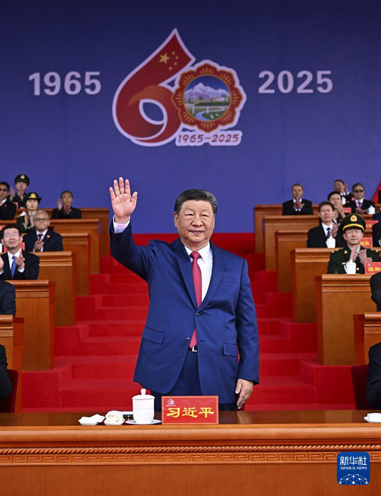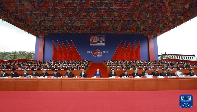 王沪宁发表讲话。他说,1965年9月,在党中央亲切关怀和党的民族政策光辉照耀下,西藏自治区宣告成立。这是西藏发展史上具有划时代意义的大事,巩固了西藏和平解放和民主改革的伟大成果,实现了西藏社会制度的历史性跨越。60年来,西藏经济社会全面发展,民族区域自治制度成功实践,民族团结日益巩固,各族人民生活蒸蒸日上,充分展现了中国共产党领导的坚强力量,充分展现了我国社会主义制度的显著政治优势。